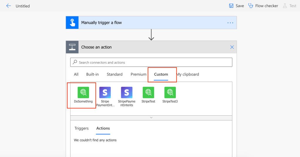 Now, the last step is to use it in your flow – just add the custom connector step “DoSomething” and specify the parameters: