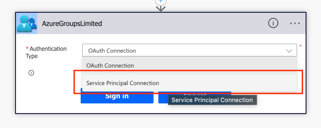 In addition, this standard connector doesn’t offer (as of November 2023) the ability to use Service Principal credentials and allows only delegated sign as a user.