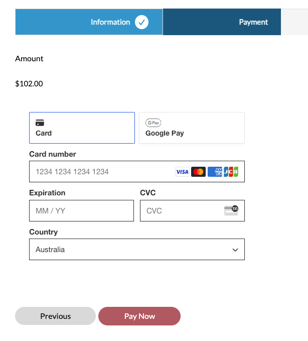 - D. The user is presented with a successful payment message on the step, the Stripe form is hidden and the user can now submit the multi-step form if the payment was the last step or proceed to the next step, e.g. a confirmation or receipt page.